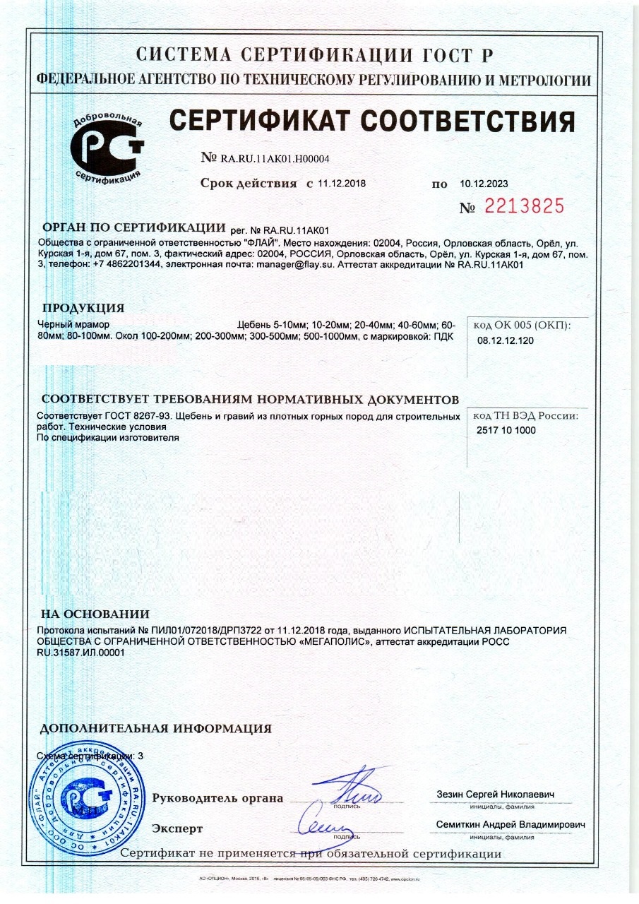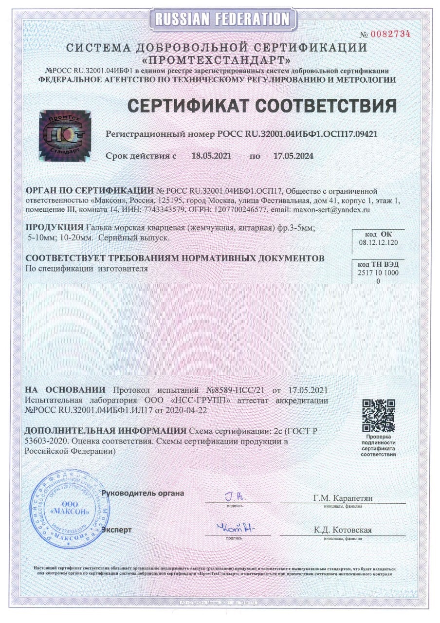 Сертификат соответствия на речную гальку