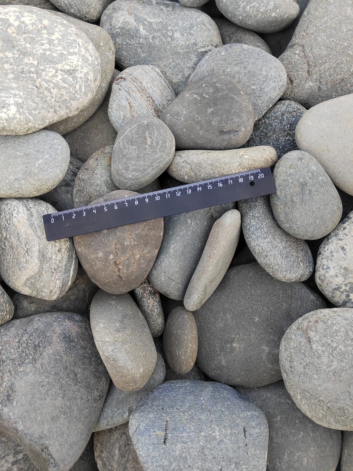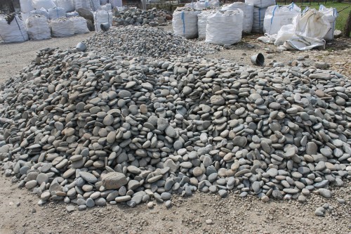 Плоская галька фракции 50-100 мм: удобный и недорогой декоративный материал.