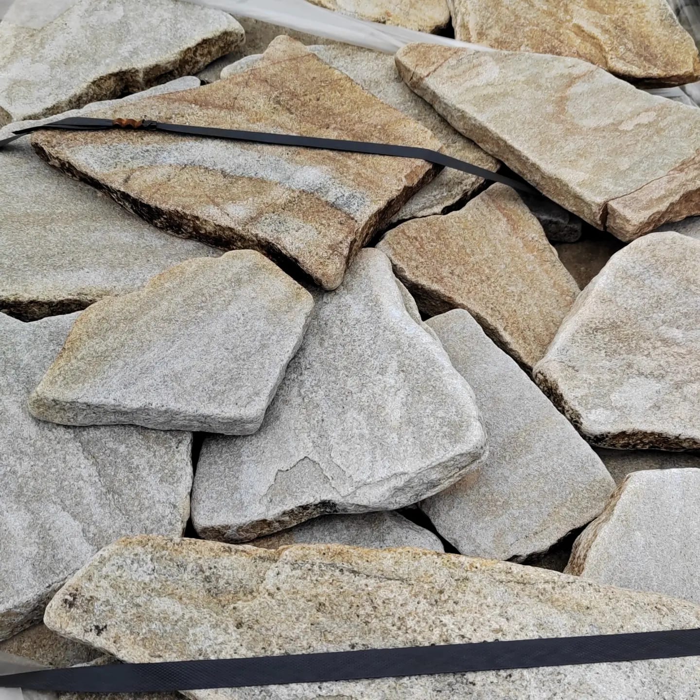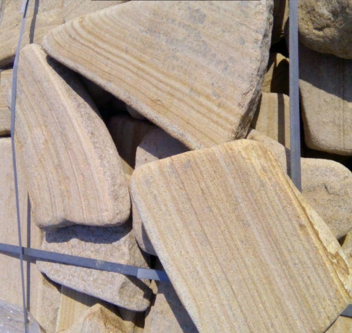 Kamenclub.ru: песчаник пластушка галтованный желтый с рисунком (3 см) купить в Пензе - заказать природный камень по низким ценам оптом с доставкой от производителя - kamenclub.ru