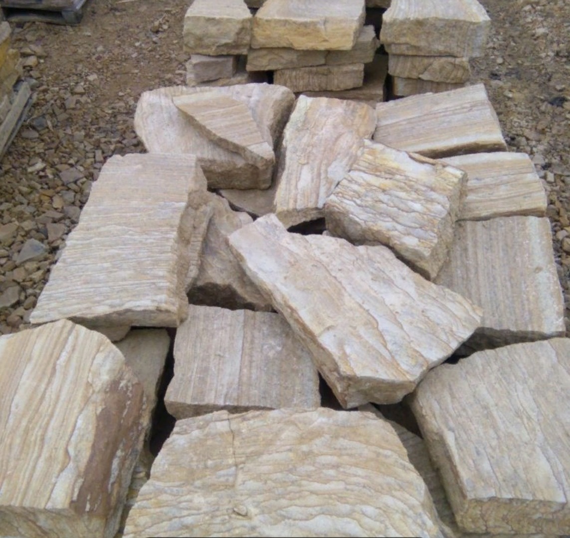 Kamenclub.ru: песчаник пластушка желтый с рисунком (7-15 см) купить в Пензе - заказать природный камень по низким ценам оптом с доставкой от производителя - kamenclub.ru
