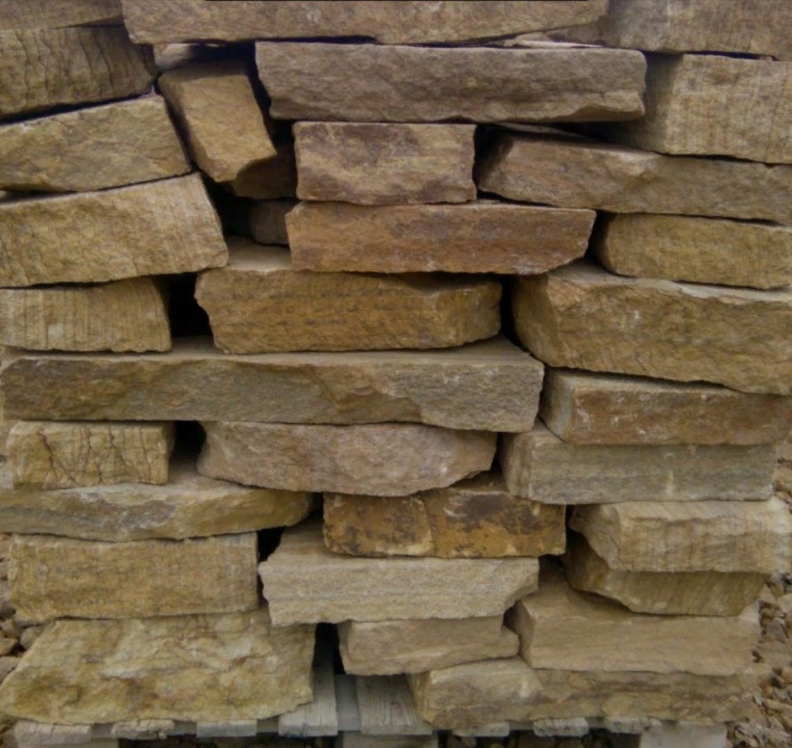 • Kamenclub.ru: Песчаник пластушка желтый с рисунком (7-15 см)  купить в Пензе плитняк - пластушка - бут желтый песчаник 10200 руб/м3   фото КАМЕНЬ КЛУБ