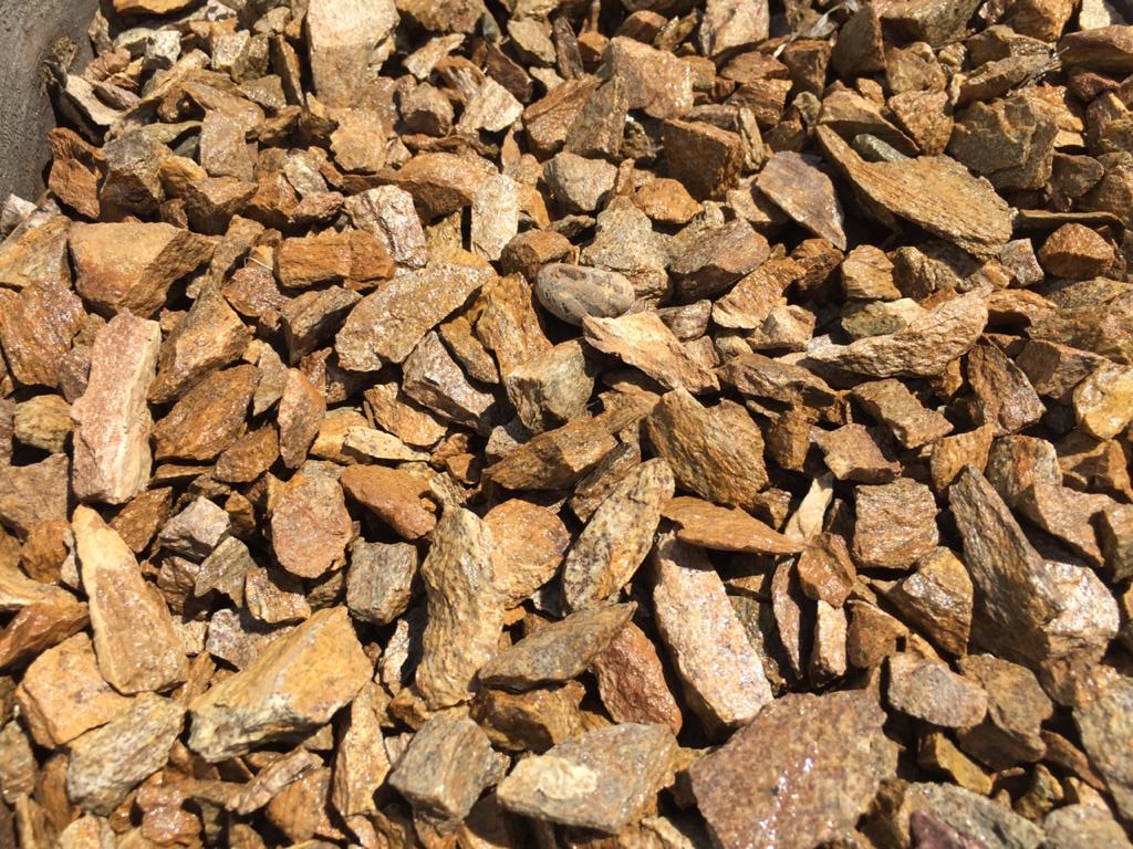 Колотый или галтованный щебень из крошки златолита высоко ценится за его невосприимчивость к радиационному фону и промышленным выбросам, так как природа наделила этот материал экологичностью, антисептическими и антибактериальными свойствами, и повышенной прочностью сжатия Важно отметить, что златолит не теряет свою прочность при постоянном контакте с водой, и не окисляется, поэтому его часто применяют в качестве камня для бань или саун. Перспектива изготовления фонтана из златолита, или краев водоема /бассейна будет отличным решением. Как и отделка внутренних помещений бани или сауны, дорожек или отсыпок для сада.